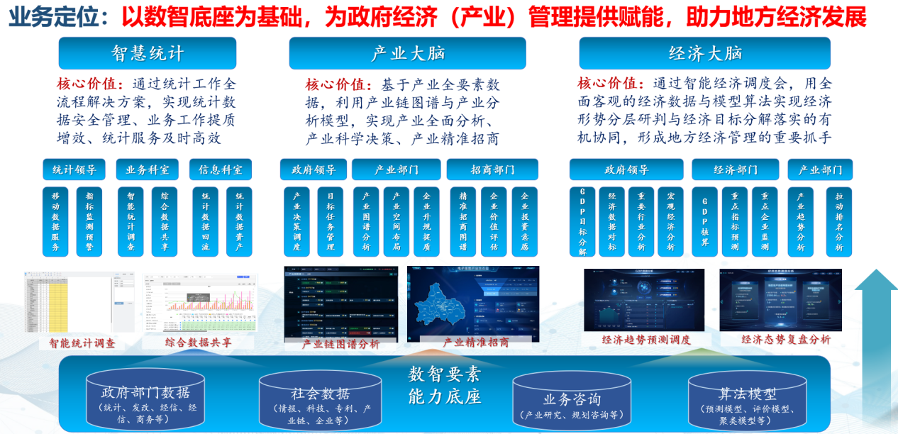 為充分發(fā)揮數(shù)字化在政府履行經(jīng)濟(jì)調(diào)節(jié)的重要支撐作用,強(qiáng)化經(jīng)濟(jì)運(yùn)行大數(shù)據(jù)監(jiān)測分析,提升經(jīng)濟(jì)調(diào)節(jié)能力,中科信息公司以“數(shù)據(jù)智能”驅(qū)動(dòng)政府產(chǎn)業(yè)與經(jīng)濟(jì)治理的數(shù)字化改革,基于自身在產(chǎn)業(yè)經(jīng)濟(jì)領(lǐng)域的行業(yè)經(jīng)驗(yàn)、技術(shù)積累及數(shù)據(jù)沉淀,構(gòu)建宏觀“看形勢”“測趨勢”,中觀“析堵點(diǎn)”,微觀“治問題”三層應(yīng)用,打造“經(jīng)濟(jì)大腦”、“產(chǎn)業(yè)大腦”、“智慧統(tǒng)計(jì)”全鏈條產(chǎn)品解決方案,成為地方政府做好經(jīng)濟(jì)治理、產(chǎn)業(yè)發(fā)展的有力抓手