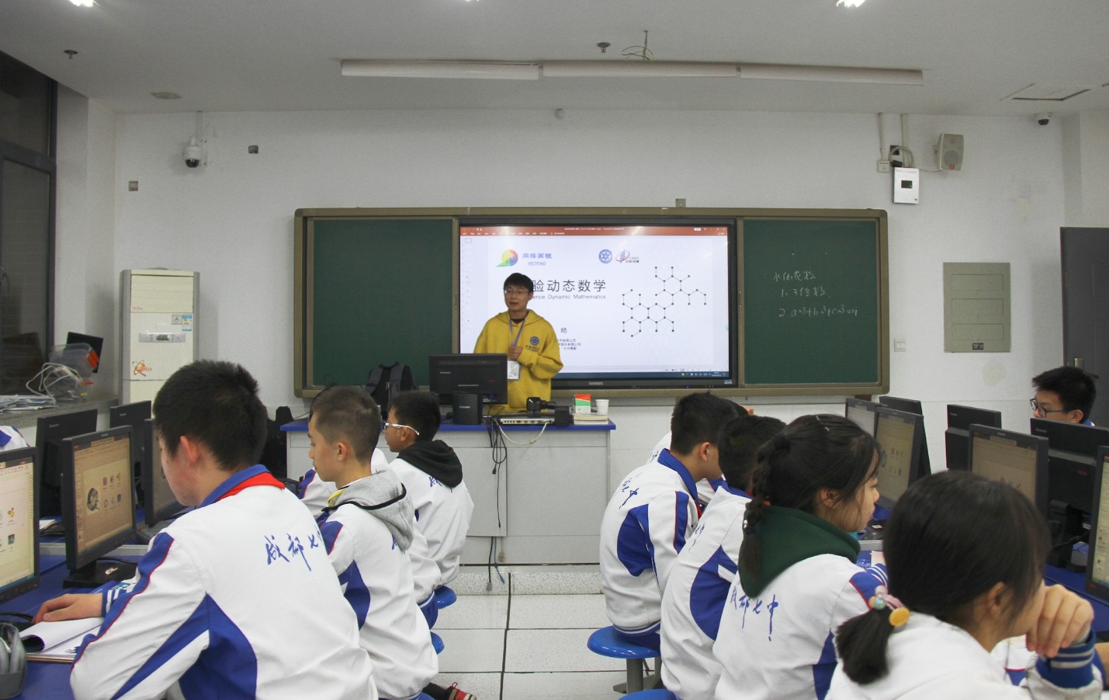 活動啟動儀式結(jié)束后,公司科普代表團管皓博士以“體驗動態(tài)數(shù)學”為主題,給成都七中的學生們上了一堂生動的幾何課。管博士師從著名計算機科學家、數(shù)學家張景中院士,主要研究智能教育軟件、計算機圖形學等方向。課上,他運用張景中院士團隊研發(fā)的動態(tài)數(shù)學軟件向?qū)W生們展示了幾何學中的歐拉線、蘋果曲線、動態(tài)曲面,并分享了動態(tài)數(shù)學軟件在學習中的應用案例。在互動環(huán)節(jié)中,學生們踴躍參與,完全被動態(tài)幾何的魅力所吸引,調(diào)動起對數(shù)學的濃厚興趣。