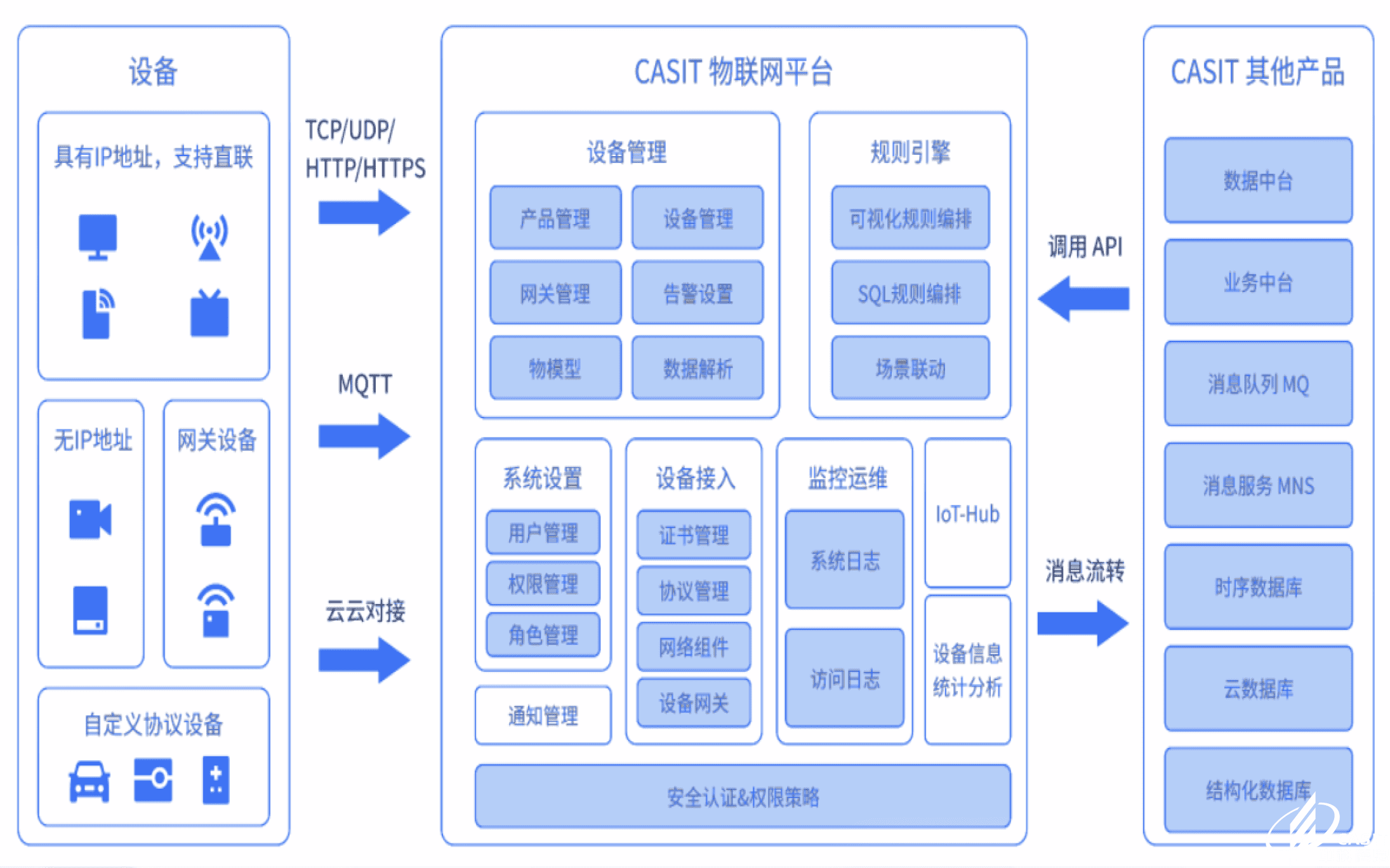 極云物聯(lián)網(wǎng)中臺(tái)是一個(gè)企業(yè)級(jí)物聯(lián)網(wǎng)基礎(chǔ)開發(fā)平臺(tái),可實(shí)現(xiàn)物聯(lián)網(wǎng)業(yè)務(wù)開發(fā)的眾多基礎(chǔ)功能,幫助企業(yè)快速建立物聯(lián)網(wǎng)相關(guān)業(yè)務(wù)系統(tǒng)。平臺(tái)集成了設(shè)備管理、數(shù)據(jù)安全通信和消息訂閱等能力,向下支持海量設(shè)備連接,采集設(shè)備數(shù)據(jù)上云;向上提供云端API,服務(wù)端可通過調(diào)用云端 API 將指令下發(fā)至設(shè)備端,實(shí)現(xiàn)遠(yuǎn)程控制;除此以外,平臺(tái)還提供規(guī)則引擎等功能。其中,設(shè)備接入與管理支持億級(jí)設(shè)備與云端建立安全可靠的雙向連接;可視化規(guī)則引擎提供設(shè)備與云上各產(chǎn)品之間的數(shù)據(jù)流轉(zhuǎn)。從而幫助用戶快速搭建垂直物聯(lián)網(wǎng)架構(gòu),高效實(shí)現(xiàn)場景化智能應(yīng)用。